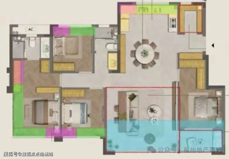 和116㎡格局基本一致,多出的10㎡空间主要分配在厨房、x空间、主卧收纳和主卫空间。