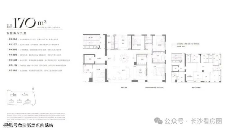 170㎡户型(原168㎡升级):得房率从110.6%提升至113%,套内面积达192.1㎡。拓展区域补全了最后一个缺角,户型更加方正,且占据小区最核心位置,视野景观最佳。