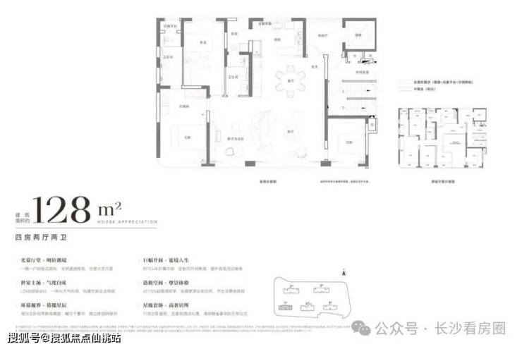 128㎡户型:得房率从113.1%提升至114.3%,套内面积达146.3㎡。作为项目的入门户型,总价相对可控,是注重学区的家庭的高效选择。