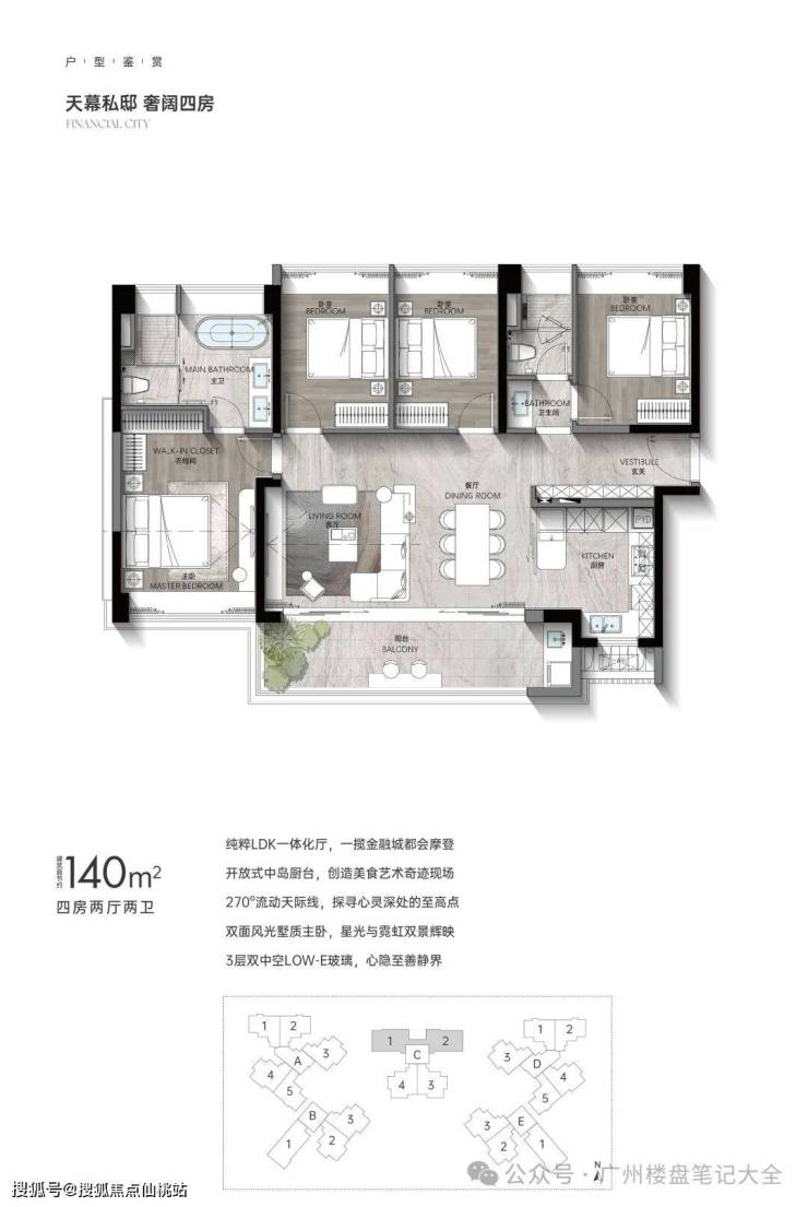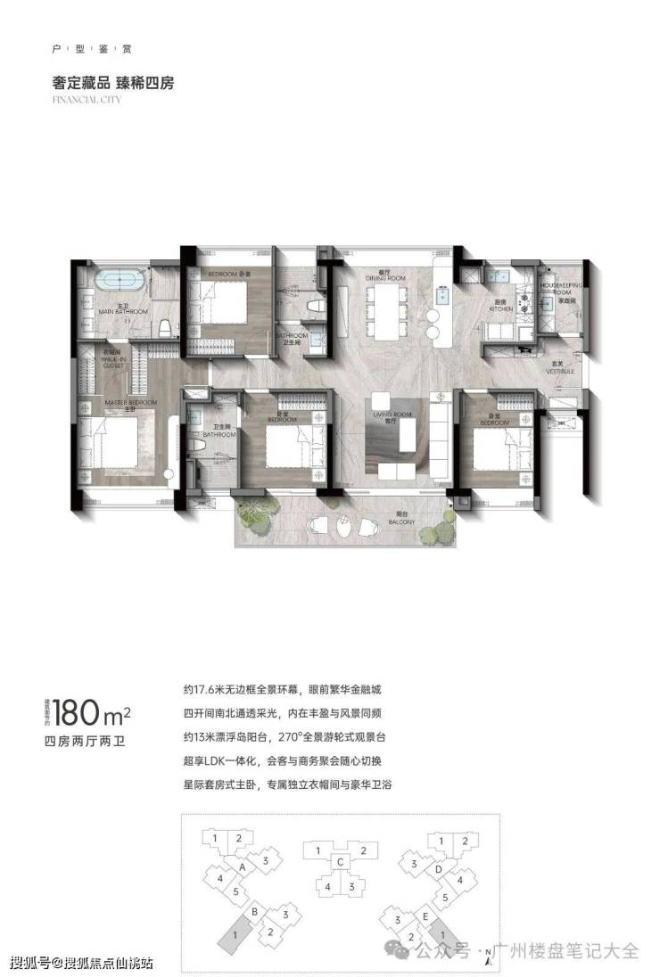 卖点三、工匠价值:时代的孤品,天河的限藏,125-180㎡稀缺/灵活户型,南向花园景观最大化,水晶般立面设计,整体风格,科技时尚简约,品牌系统窗打造,整体视觉效果更舒适,超前端的外立面材料,归家仪式感满分;