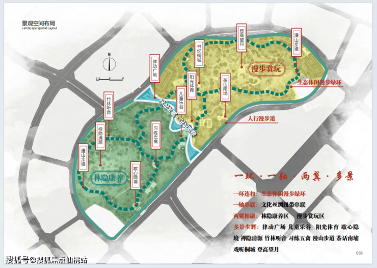 将[隐奢度假]理念与现代美学融合,匠造多景观节点,多元主题空间,动静皆宜,让多龄段居者在此能各有享乐。