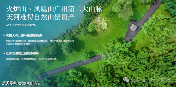 火炉山森林公园、凤凰山森林公园、旧羊山森林公园,三山环绕;大观湿地公园、天麓湖森林公园,近享天河中心绿肺生活。