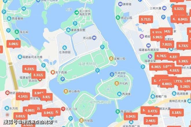 巅峰时期西湖一线临湖房价均价接近4.3万,临湖项目达到6.4万/㎡,几乎达到福州市均价的2.5倍,核心豪宅左海御园更是坐拥10万+/㎡的单价,且整体挂牌数量稀少。