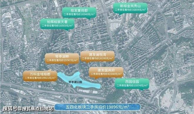 以五四北板块为参照,整个板块新房网签均价约1.8万/㎡,琴亭湖的一线湖景房价格却高居不下,建发国宾府二手均价约3.5万/㎡,万科金域榕郡二手均价约2.8万元/㎡,远高于板块均价。