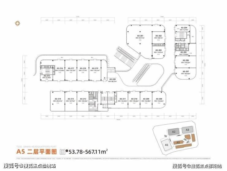 商业产品:A2/A3写字楼底商、A5体验式BLOCK商业街区(A栋、B栋、C栋、D栋)
