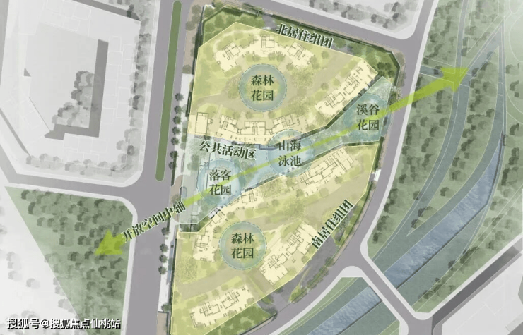 •一轴丨二组团丨三区丨五花园