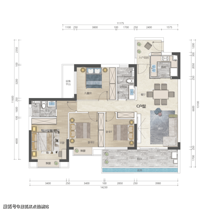 建面约111-141㎡三到四室,满足不同家庭居住需求;容积率约2.0、建筑密度约18.76%、绿地率约41.6%,营造低密品质社区,舒适生活氛围。