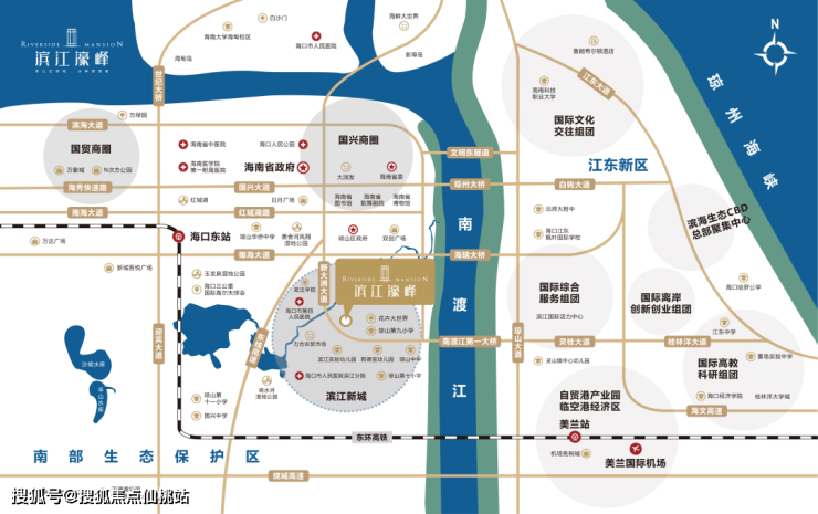 海口滨江新城板块价值腾飞,滨江新城位于南渡江左岸,是海口城市跨南渡江发展,促进江东组团发展的重点区域,也是未来的新城中心、新型生态居住区。规划目标为把滨江新城南区建设成为体现绿色生态理念的滨江居住区。从滨江新城片区的规划范围来看,东边即是江东新区,将享受江东板块发展利好;西北边是国兴CBD,北边是省委所在地及海口“大动脉”国兴大道,项目区位优势毋庸置疑。