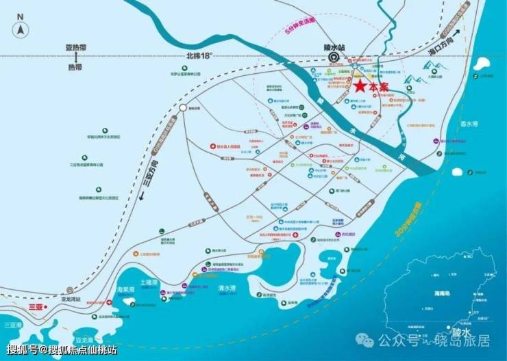 陵水位于海南岛东南部,拥享118.57公里优美海岸线,“三湾三岛两湖一山一水”,北纬18度以南稀缺且珍贵,项目位于陵水椰林北大道和桃源大道交汇处,是市政城市更新“一河两岸”的核心位置。