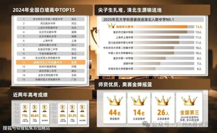根据2024年全国百强高中排行榜,湖师大附中位列11名,甚至比广州家长心中的“神学院”华附排名更高!