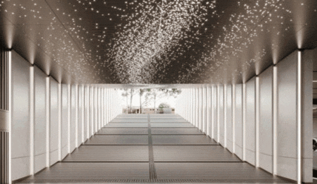 项目还对标星级酒店标准,精心设计双归家动线,人行通过艺术门厅抵达首层挑高大堂,车行则经由星空顶地下车库,步入引入自然光的景观地下光厅,每一步都彰显尊贵身份,步步生辉。