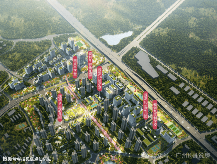 项目还规划了一所24班的小学,后期还会配建一所45班的九年一贯制学校。4所幼儿园更是大手笔,规划了18班+18班+15班+9班,完全对标黄埔新城的教育配套;