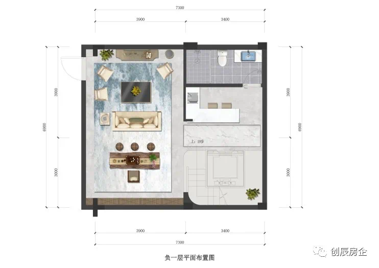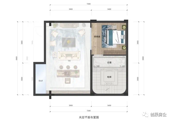 ● 约5.6米层高,可设夹层,布置静幽茶室、地下会客厅或者保姆房