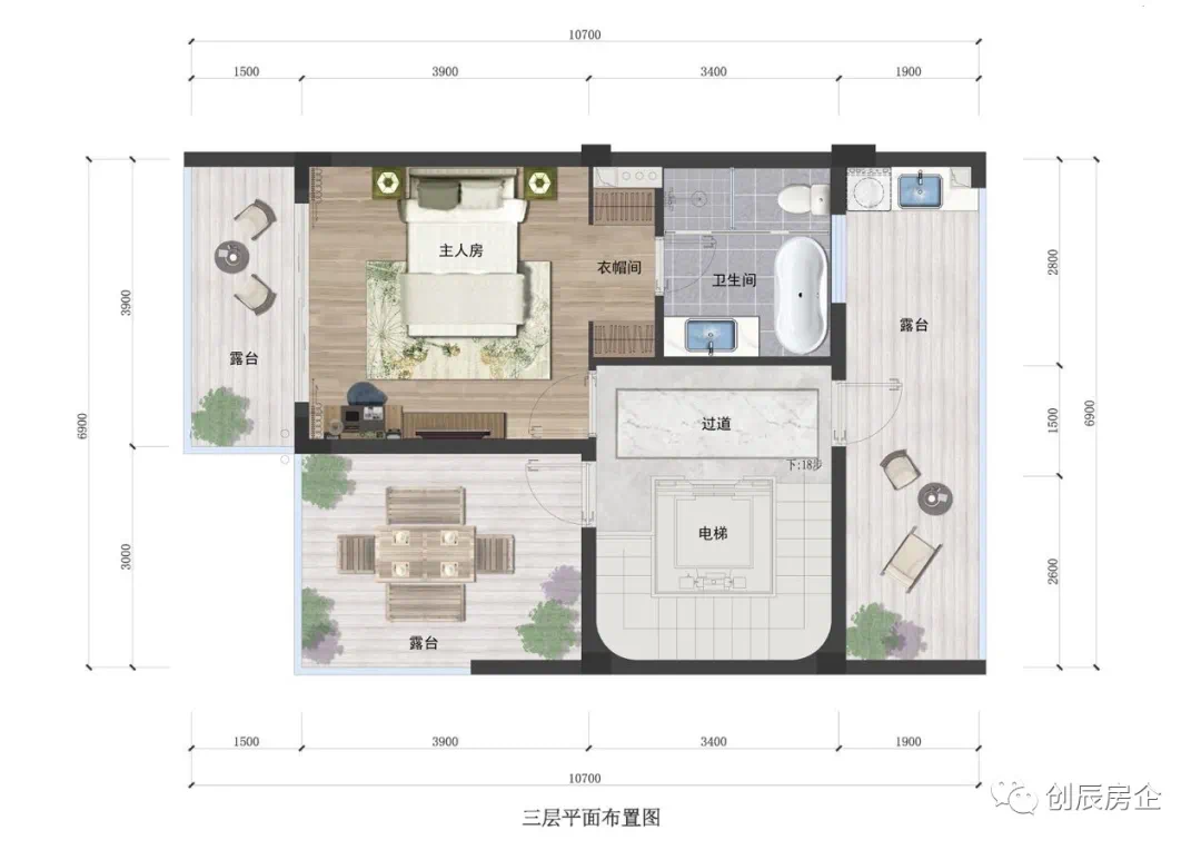 ● 全功能的主人层设计,独享尊贵的10.7米大开间豪华套房布局