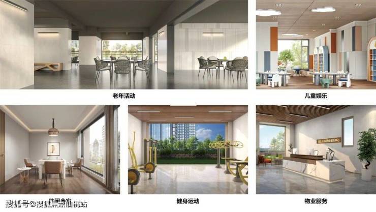 老年活动、儿童娱乐、休闲会客、健身运动、物业服务五大主题中心,从亲子陪伴到幸福颐养,从邻里交流到会客亲友,让业主尊享面面俱到的幸福生活。