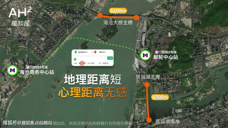 这种感觉,并不是偶然。从交通上来说,海沧大桥主桥仅约1.1km,仅相当于筼筜湖北岸到南岸的距离,地铁2号线”海沧商务中心站”到“邮轮中心站”,也仅2站约6分钟。地理距离的缩短,带来的便是心理距离的无界感。