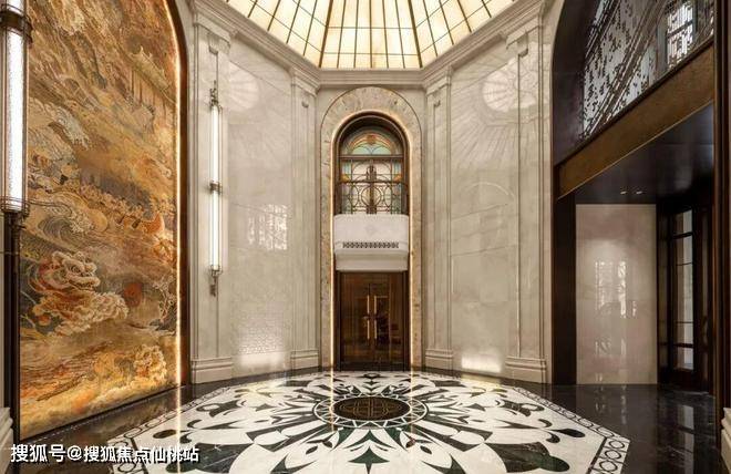 双层挑高的八角厅入户大堂,巨幅壁画,融入了祖庙、龙舟、醒狮等佛山岭南文化元素,将在地文化凝铸于海派美学的叙事之中,呈现出来的效果足以震撼人心。