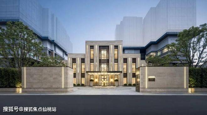 小区正门门楼,提炼纽约华尔道夫酒店设计精髓,高约15米的大门,墙面选用摩洛哥进口石材,散发出的门第气场庄重而不失温度。