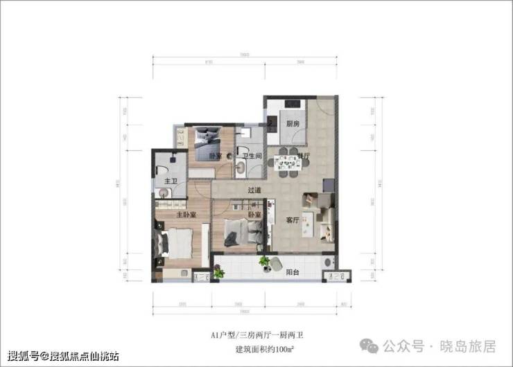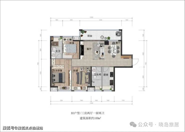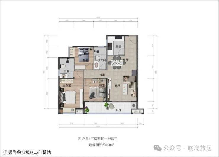 100㎡;三房两厅两卫