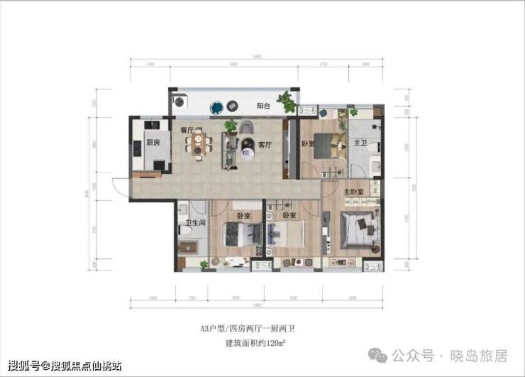 120㎡:四房两厅两卫