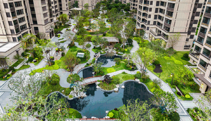 穿过庄重“前堂”门仪,豁然眼前的是带有禅意的中式庭院,集静谧与清雅为一体,春來青苔上阶、夏阙落雨成帘……这些取自画卷中的亭、台、廊、桥、草木、水石等元素,将禅境中式园林搬进社区。