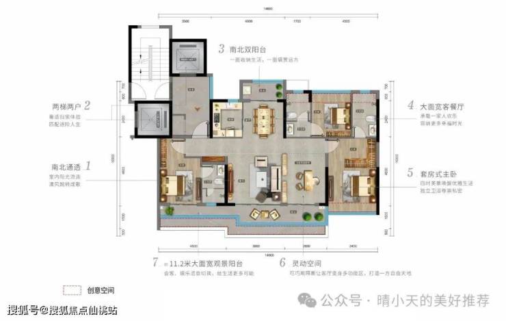 建面约105-133㎡通透绝版三至四房,长达11.2m大阳台