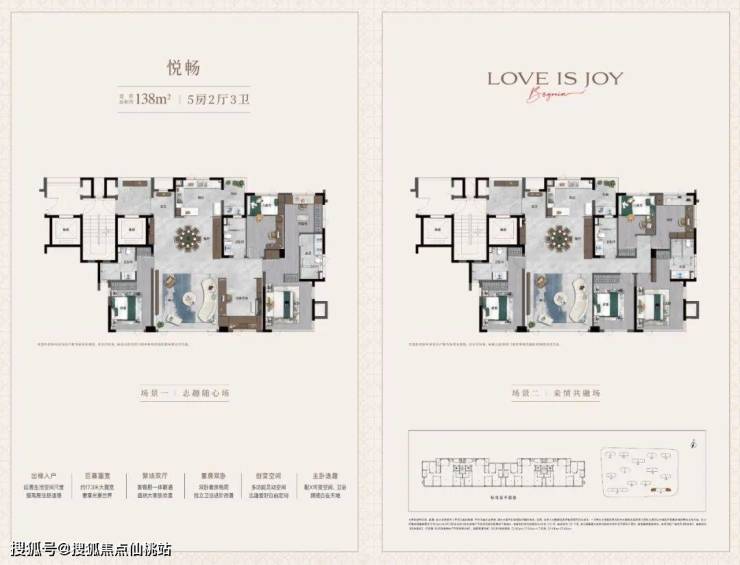 基于对当代菁英家庭改善向往,悦海棠定向研发悦己户型体系,建面约128-172㎡轻奢美学华宅,以X+1可变空间、家庭平权、超容量收纳等创新设计,由外而内,全维擢升精奢质感。
