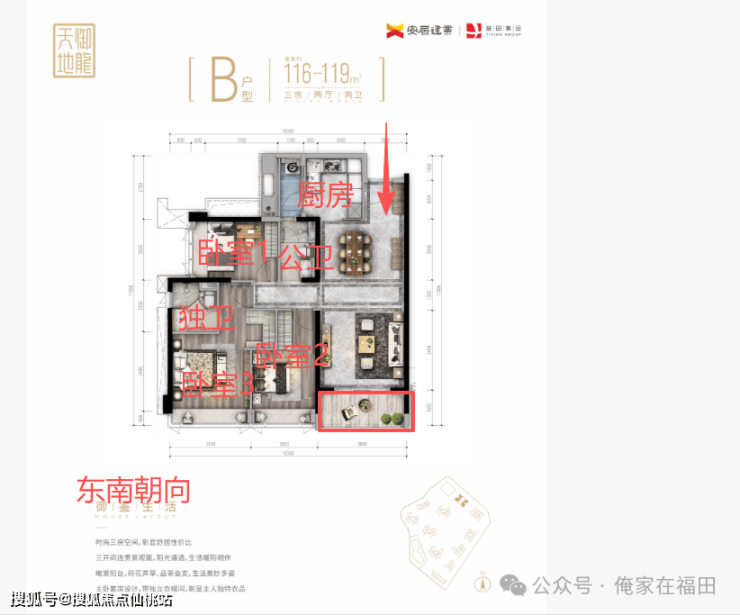 【B户型113-116平米】客厅朝东南向 客厅带阳台