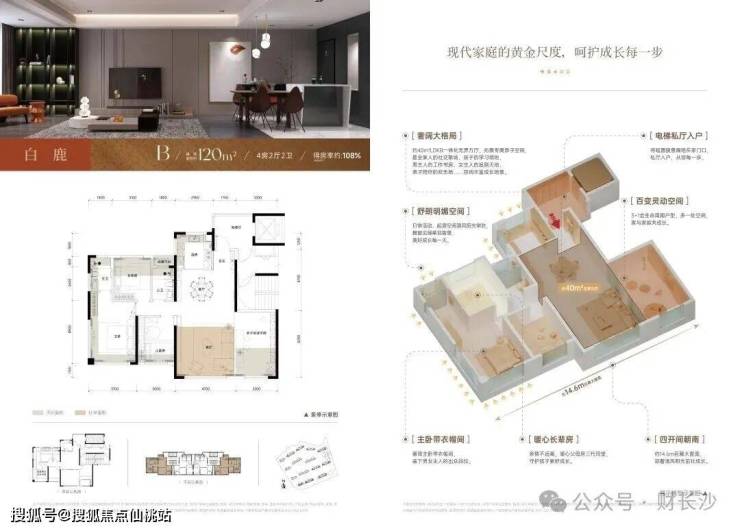 白鹿:120㎡四房两厅两卫全能配置,从容应对四口之家或三代同堂的居住需求;