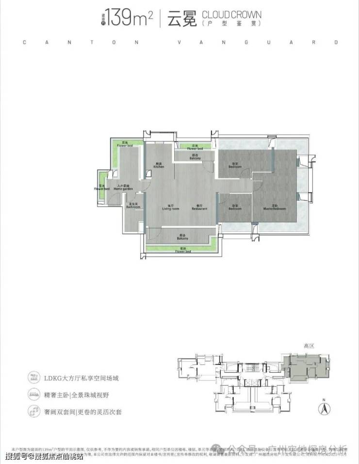 139㎡天际大平层4房3卫,仅15套,配置占据东边梯腿 23层以上270°环幕视野尽揽珠江新城繁华。