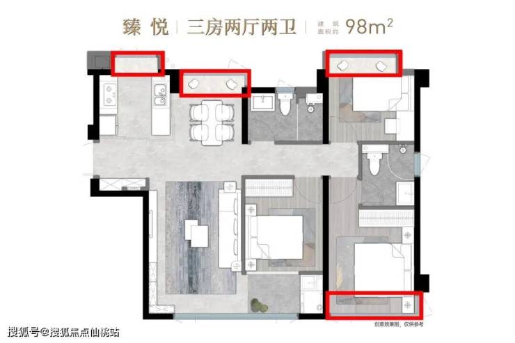 户型78-86-96-121㎡精装三四房