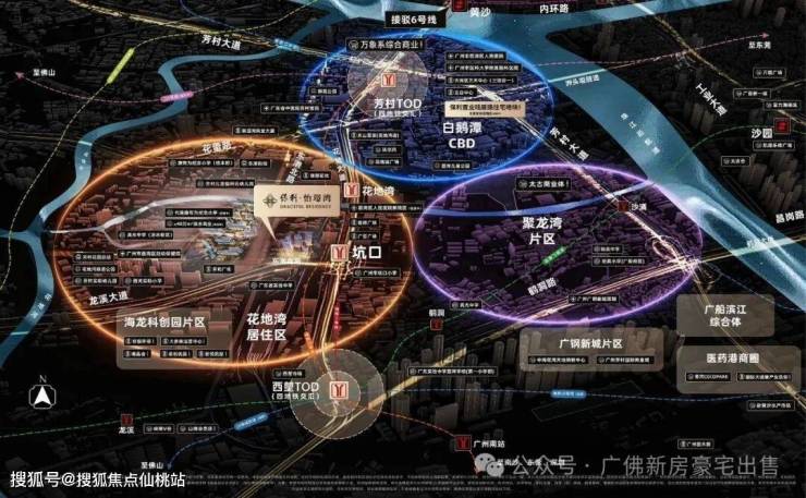 项目位于白鹅潭核心居住区,北牵白鹅潭CBD,东接聚龙湾,虹吸两端红利。得益于先天区位优势,项目还被划入珠金琶半小时生活圈,拥有的“城市核心”生活圈。