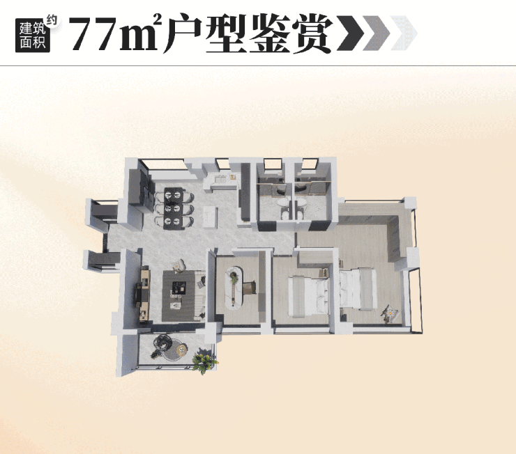 建面约79㎡户型,更是突破了小户型南向采光的想象。