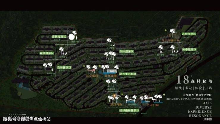 与操刀万科17英里、龙湖舜山府等标杆项目的道远景观主创团队协作,借鉴六善酒店、巴厘岛等高奢度假酒店景观巧思,以“居山观海,极致视野”的设计理念,“一主两次轴线,七大景观核心区,八大自然场景”造景格局,诠释隐林山涧的隐奢秘境。