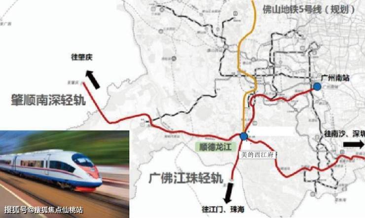 “肇顺南深”和“广佛江珠”两条轻轨将会在龙江交汇,形成顺德西站,快速通往广州,构建一个无缝对接广佛深的轨道交通网络。佛山地铁5号线更将南延至龙江,未来随着轻轨+地铁覆盖,出行更加方便快捷!