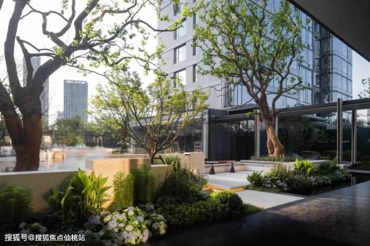 景观以低饱和的雅韵为基底,廊道与景墙糅合了温润质感与自然元素,勾勒出恬淡静谧的场域气质。时光在虚实相生间舒展,光影与流水在此诗意和鸣。