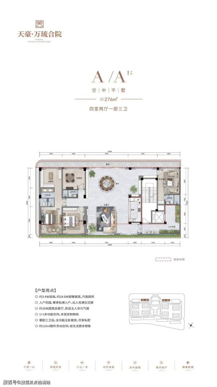 产品户型:建面约230-246㎡花园式合院,建面约276㎡空中平墅