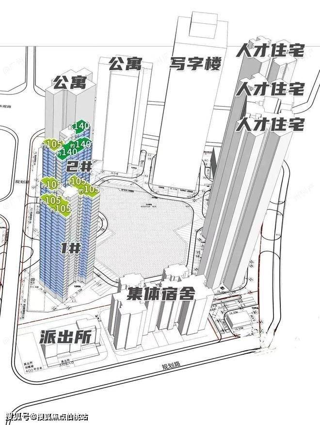 东地块规划有2栋住宅、2栋公寓、1栋写字楼和3栋人才房,住宅总货量预计265户。