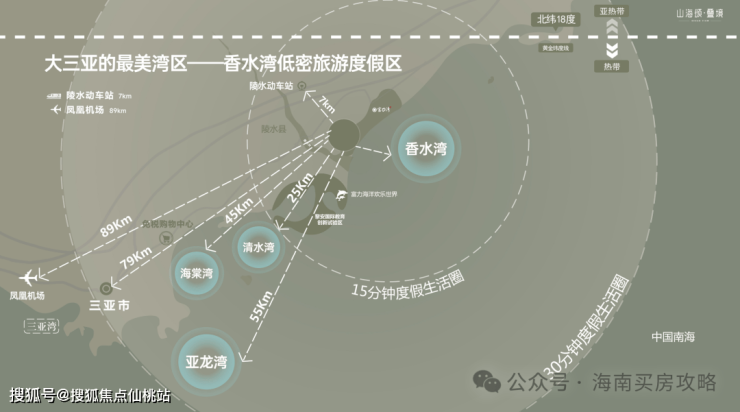 项目占位陵水香水湾高端低密旅居片区,与坎昆、夏威夷同处北纬 18° 热带黄金海岸。这里森林覆盖率超 61%,年平均温度 26°C,长夏无冬,气候宜人。背靠吊罗山热带雨林,直面香水湾碧波,内部有淡水溪流蜿蜒,向外可俯瞰分界洲岛,“山 - 海 - 河 - 岛 - 礁” 五重生态体系在此完美融合,宛如天然生态剧场 。