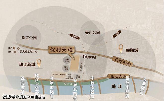 珠城-金融城(东西向):项目北侧花城大道规划东扩南移,项目南侧临江大道隧道已通车
