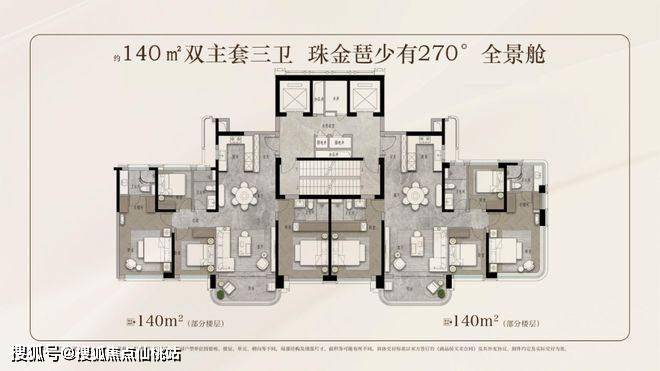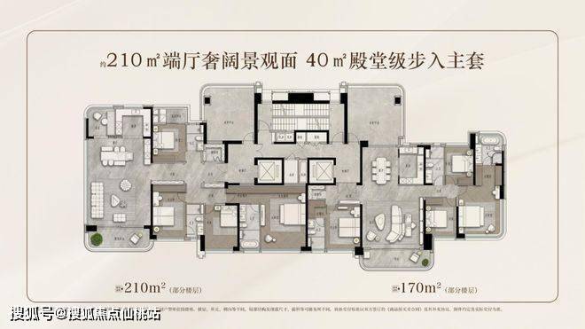 ◎产品配置:北区2T3/3T4塔楼,南区2T2板楼,建面约120-140-170-210㎡云幕平层