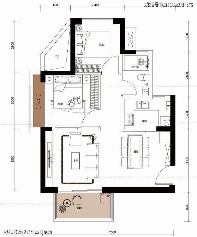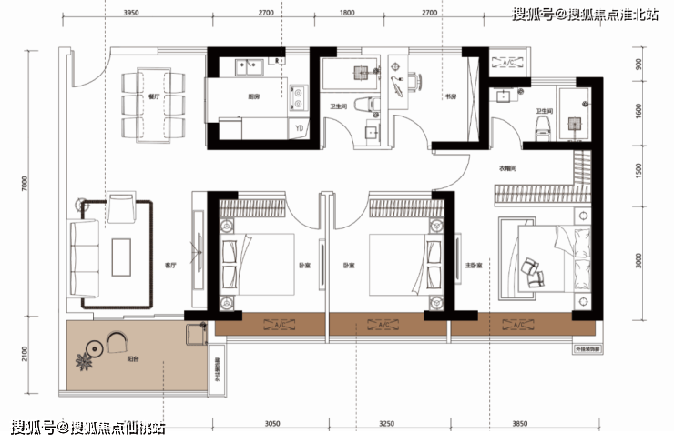 住宅产品:73㎡2房、90-95㎡3房、116㎡3房、136㎡4房