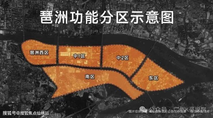 琶洲被分为四个功能区,分别是西区、琶洲中区、琶洲东区和琶洲南区。他们的功能定位如下: