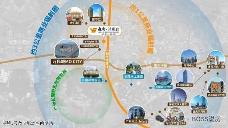 高端商圈:距万博 CBD 约 3 公里,地铁 1 站可达,天河城、万达广场、四海城等高端商业体齐聚,提供高阶消费与社交体验。
