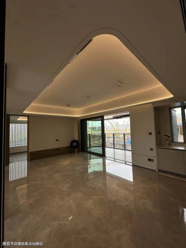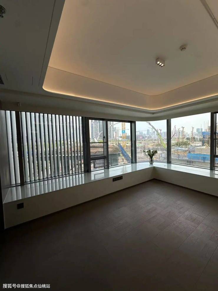 横厅四房,东南朝向,空间感开阔,采光通风佳,没有大面积的走廊或过道,节省了空间,动线也更加流畅。主卧拥有更加开阔的景观面,大面积的弧形无柱飘窗,将外部的自然光线引入室内,空间更加明亮宽敞。