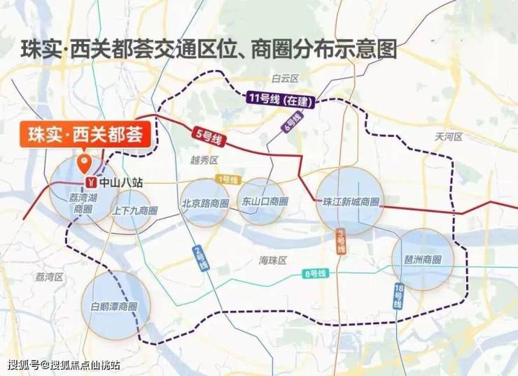 至于11号线(已开通)则是广州首条环线,串连越秀、荔湾、天河等五区,沿线不仅有白鹅潭、琶洲等全新的经济中心,还有江南西、广州塔等成熟高端商业区域,繁华的片区近在咫尺,项目可谓出生便手握王牌。