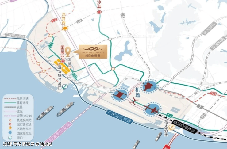 会展新城地处深圳西部七公里黄金海岸线上,位于广东省政府着力打造环珠江口100公里“黄金内湾”顶点,乘势珠江口万亿发展潜能。同时西部会展片区承接大前海“扩区”战略,拥有双港—深圳国际航空枢纽港、国际航运枢纽港、双片区——机场及周边片区、会展新城及海洋新城片区规划,近享发展先机。