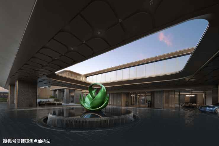 “莲花主题的雕塑”与“环岛水景”互伴互生,寓意美好且充满生机。