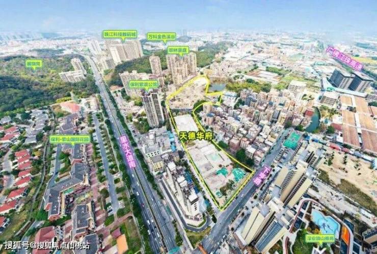 项目位置在南海里水大道北侧,紧挨着广佛江珠高速,对面就是展旗峰公园。说实话,这个地段大家应该不陌生,周边像美的滨湖学府、保利紫山这些小区都已经住人了,城市氛围是有的,不算太“生地”。