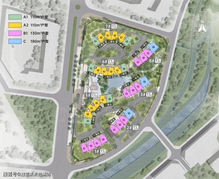 亮点:围合式布局,打造南北通透,户户观景,以中轴水系延伸景观设置泛会所入户大堂。游园式归家,双动线,保证南北两个组团独立,整体增强私密性,减少居住干扰。